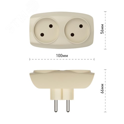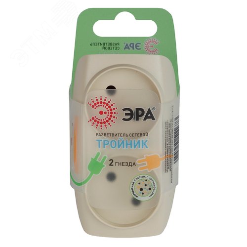Наименование в прайсе производителя -Разветвитель электрический ЭРА SP-2-I на 2 розетки без заземления 16А слоновая кость;