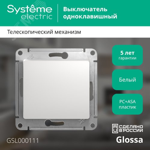 GLOSSA 1-клавишный ВЫКЛЮЧАТЕЛЬ. сх.1. 10АХ. механизм. БЕЛЫЙ