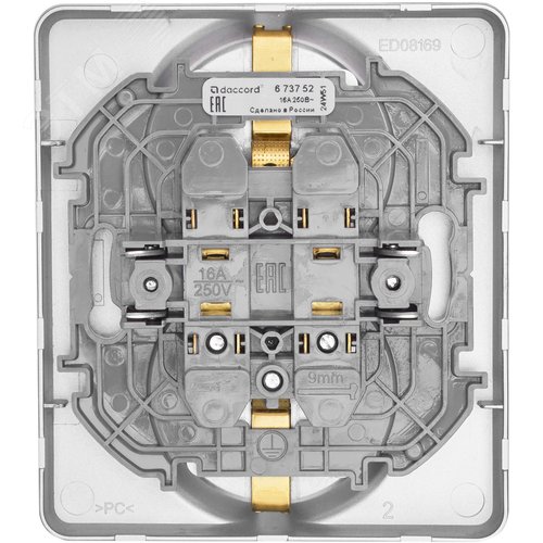 Розетка INSPIRIA 673752 2х2К+З 16А алюминий